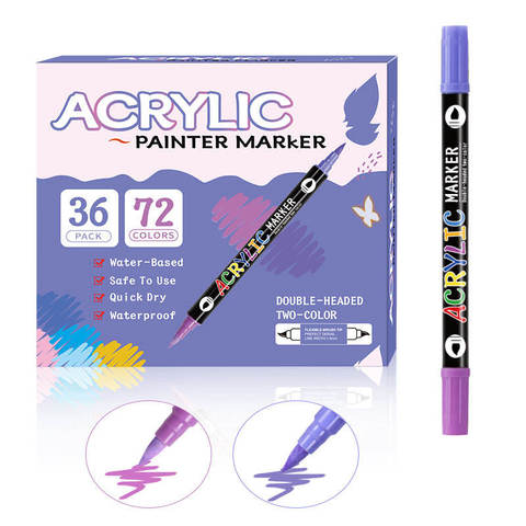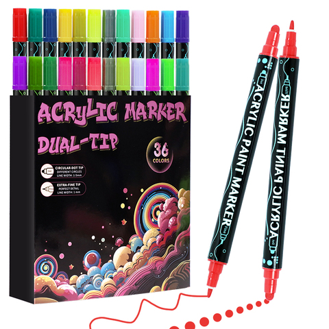 Профессиональные двухконтурные акриловые маркеры для рисования, 36 ярких цветов, водостойкие нетоксичные маркеры для рисования